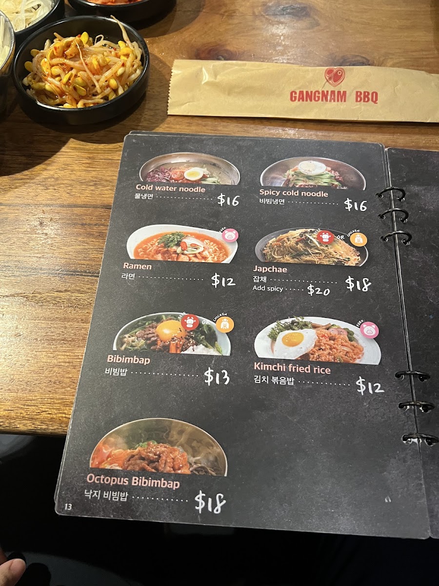 Gangnam BBQ Menu